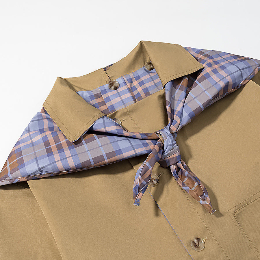 Single breasted double-sided long sleeved checkered embroidered jacket for women